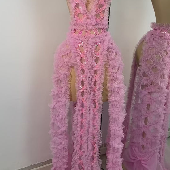 This elegant pink tulle dress combines delicate layers with a refined silhouette, creating a graceful and timeless look. Perfect for special occasions, its soft fabric and subtle hue enhance your natural elegance while offering comfortable wear throughout the event. A sophisticated choice for those seeking understated charm and feminine allure.