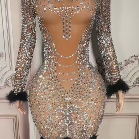 Indulge in the ultimate luxury with our Diamond Gallery dress. This exquisite piece features a stunning layered diamond with added fur that will make you feel like a work of art. Elevate your wardrobe with this exclusive and sophisticated dress, perfect for any elegant occasion.