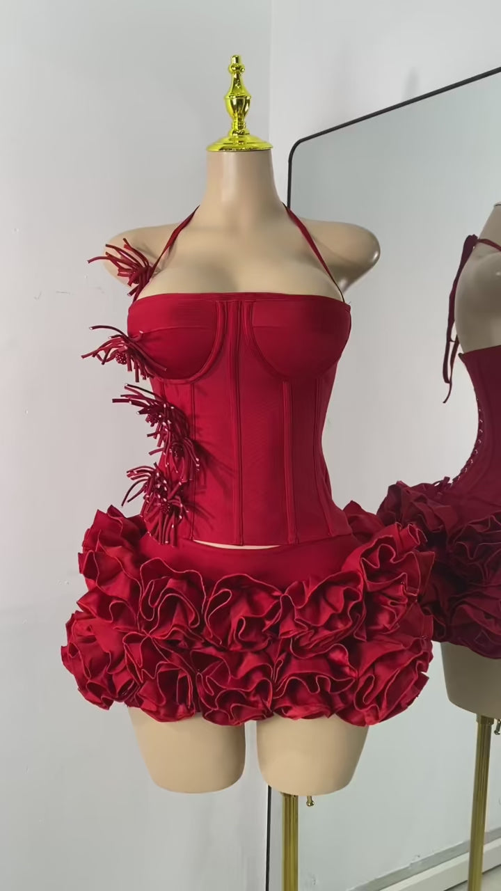 Rosette-style ruffled skirt with couture-inspired detailing
